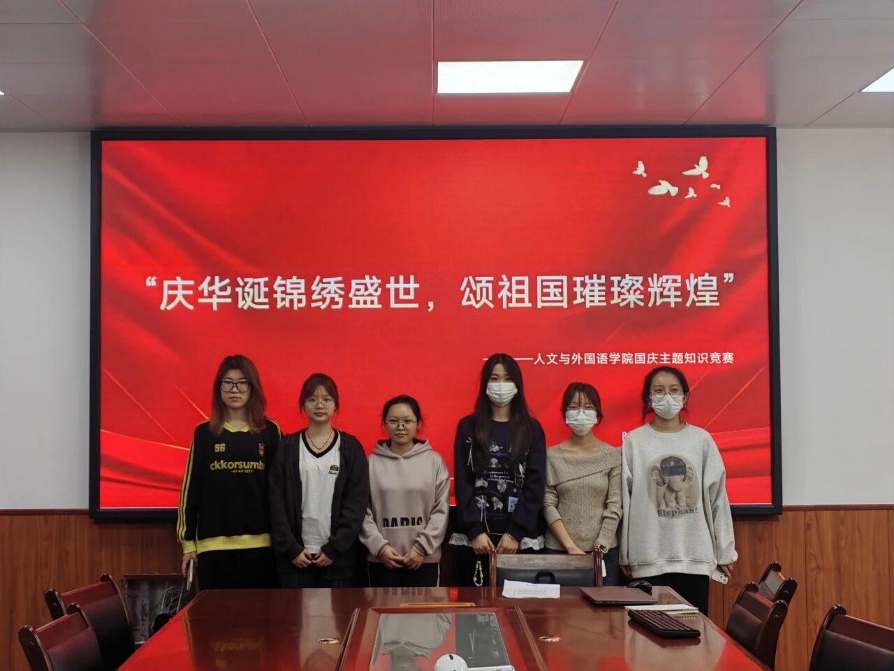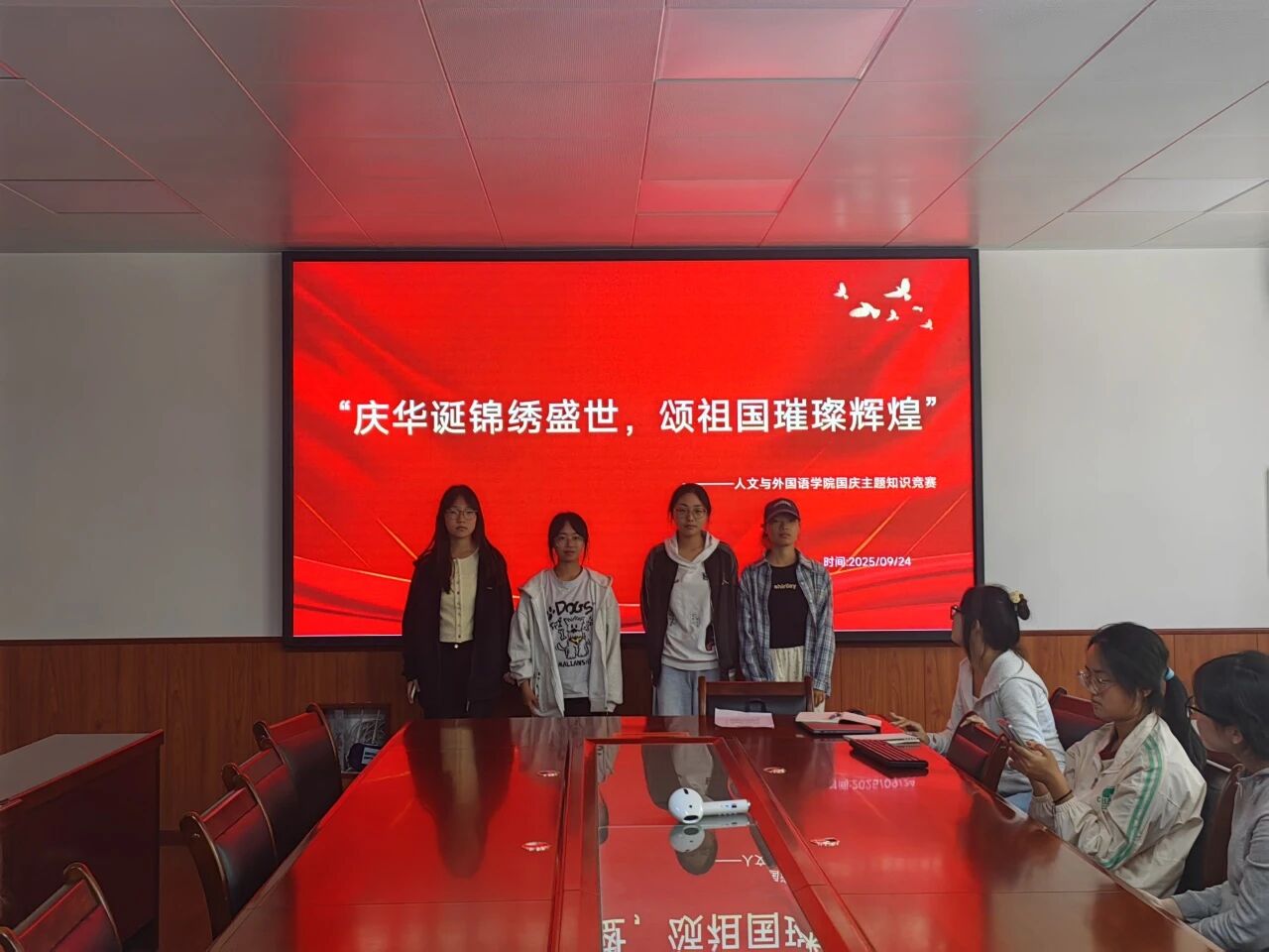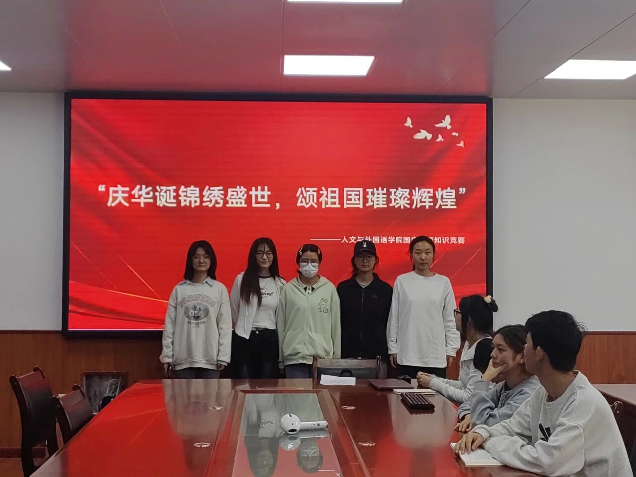 为深入贯彻党的二十大精神,庆祝中华人民共和国成立76周年,9月24日,人文与外国语学院在2号教学楼226会议室举办“庆华诞锦绣盛世,诵祖国璀璨辉煌”国庆主题知识竞赛。