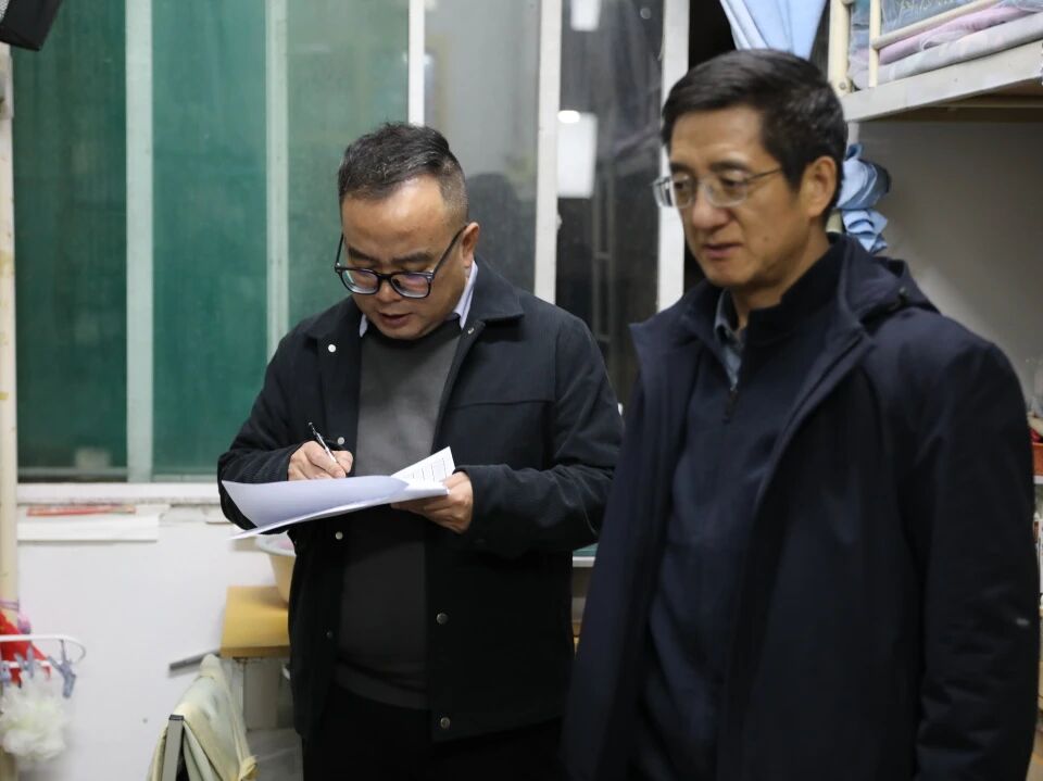 为落实学校相关会议精神,筑牢校园安全屏障,保障宿舍安全和身心健康,人文与外国语学院于12月2日、3日晚间组织开展宿舍安全专项检查活动。本次检查由学院党委书记费秀水、院长王新平、党委副书记邢皓越带队,各年级辅导员全员参与,以“严标准、实举措”织密学生宿舍安全防护网,将校园安全理工作落到实处。