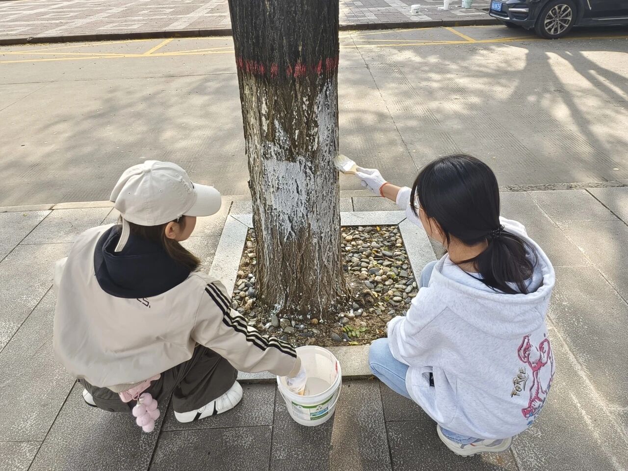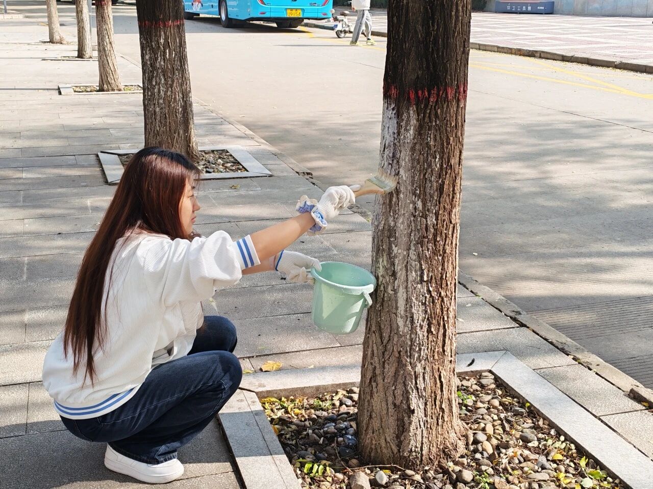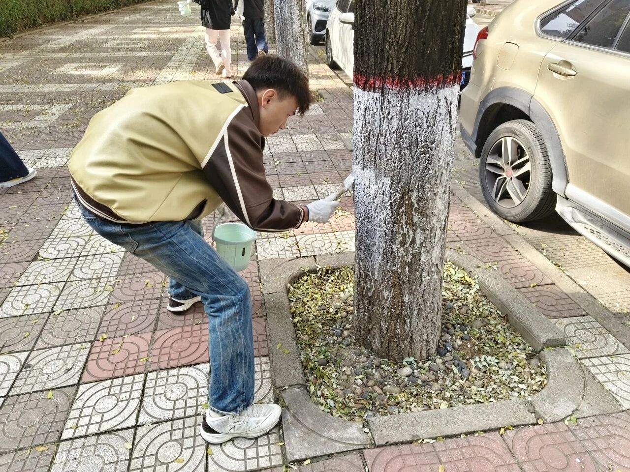 为深入贯彻落实习近平新时代中国特色社会主义思想,进一步增强受助学子的社会担当意识,引导广大青年树立正确的劳动价值观,11月12日,人文与外国语学院组织开展了“校园美化·树干涂白”劳动实践活动。