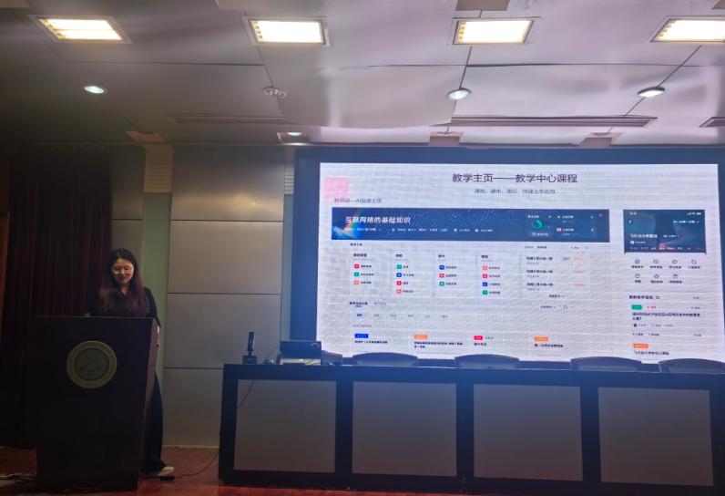培训现场,上海卓越睿新数码科技有限公司AI事业部郑欢经理首先作专题分享。他从全球AI教育发展形势切入,详细讲解了依托智慧树平台打造的AI教学中心功能体系,系统演示了AI在教、研、测、评全教学链条的赋能作用。该平台可实现学生课前预习任务智能布置、课中教学过程录制与实时数据分析、课后作业批改与考试测评自动化,同时整合海量优质线上课程资源,支持学生个性化自主学习,助力教师从传统授课者向AI分析师、智慧教学主导者转型。